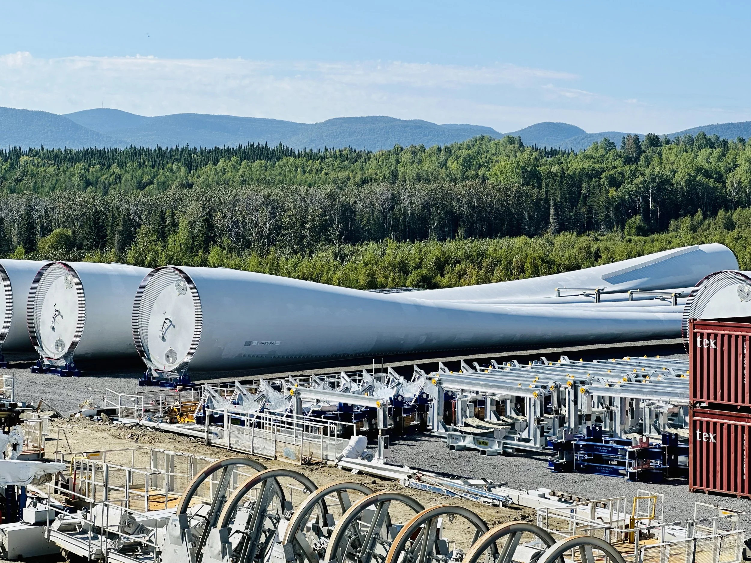 Wind turbine blades destined for a Boston offshore wind project manufactured in Gaspe at LM Wind Power. The facility employs over 500 workers and contributes to the local economy and the green transition. Photo by Michael Chase. Follow him on Instagram @mjohnsonchase.