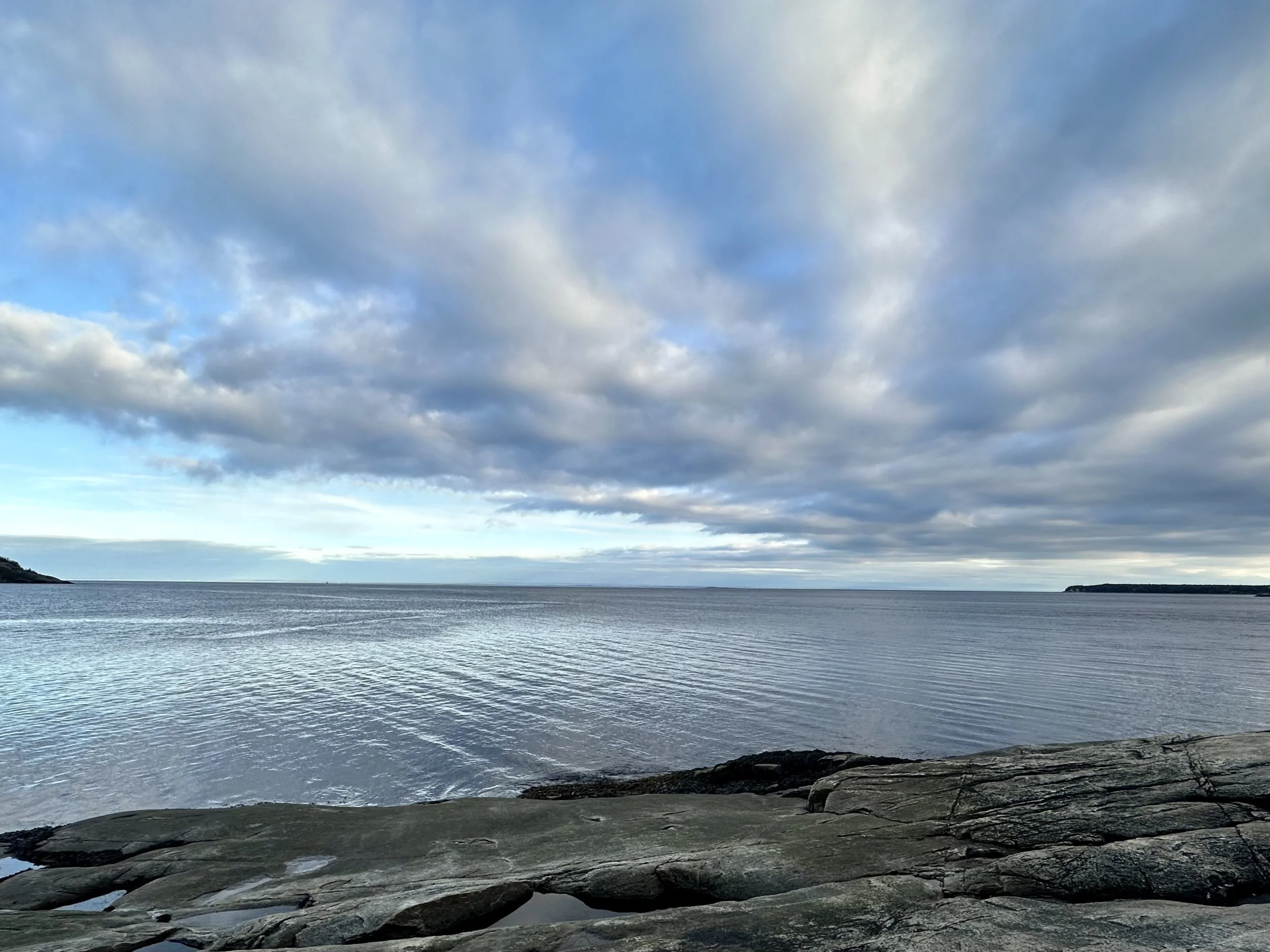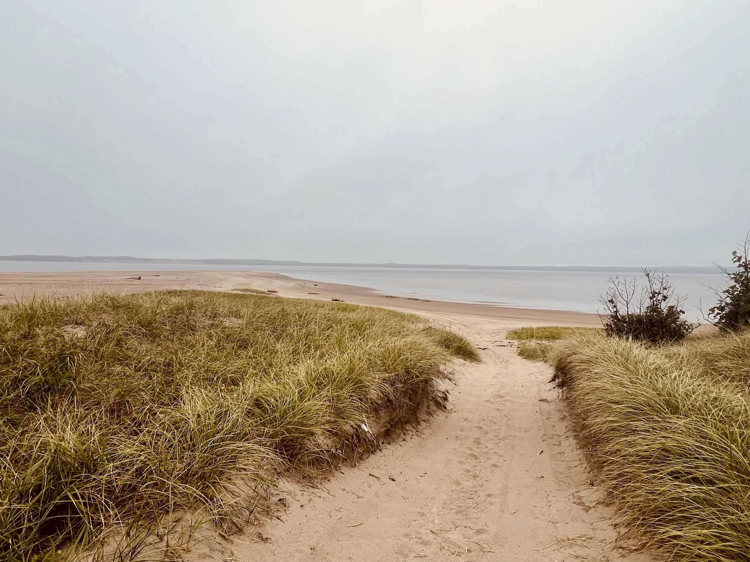 Overlooking the Bay of Saint Lawrence facing toward the Gaspe Peninsula. This view is on dunes just north of Tadoussac, where Jenny and I watched a small school of Fin Whales as they frolicked off the rocky beach. Photo by Jenny Hershey. Follow her on Instagram @deeofo.