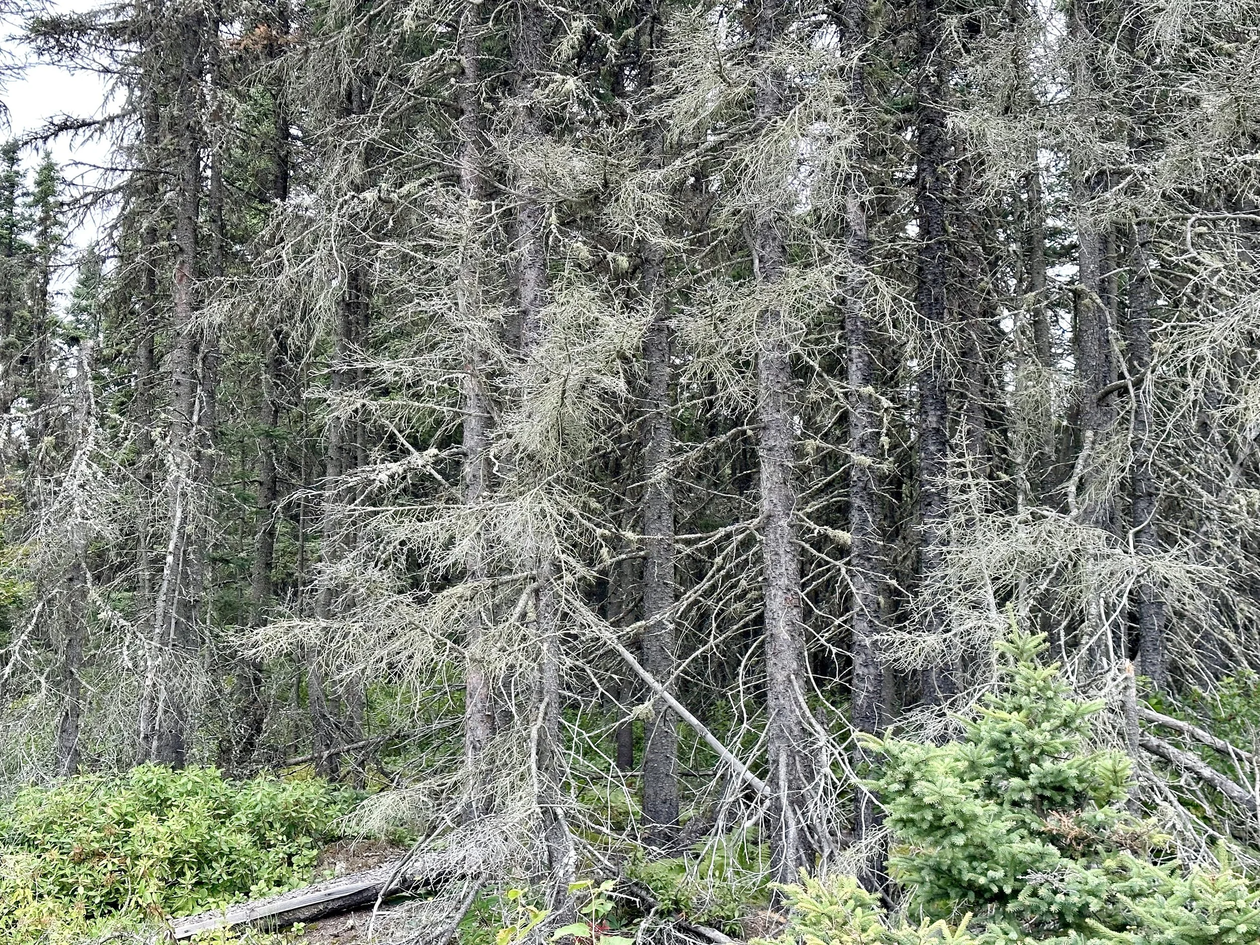 Climate change and natural disturbances are the most likely cause of dead trees in the boreal forest near Baie-Comeau, Quebec. As we know only too well after this summer’s record-breaking wildfires, climate change is causing the boreal forest to experience unprecedented warming and drying, which kills trees, turning them into fuel. In addition, insect outbreaks, such as spruce budworm and bark beetles, damage and weaken trees, making them more susceptible to diseases and decay. Even in the absence of wildfires, these factors can create a feedback loop where more carbon is released from the forest into the atmosphere, contributing to further climate change and forest degradation. Photo by Michael Chase. Follow him on Instagram @mjohnsonchase.