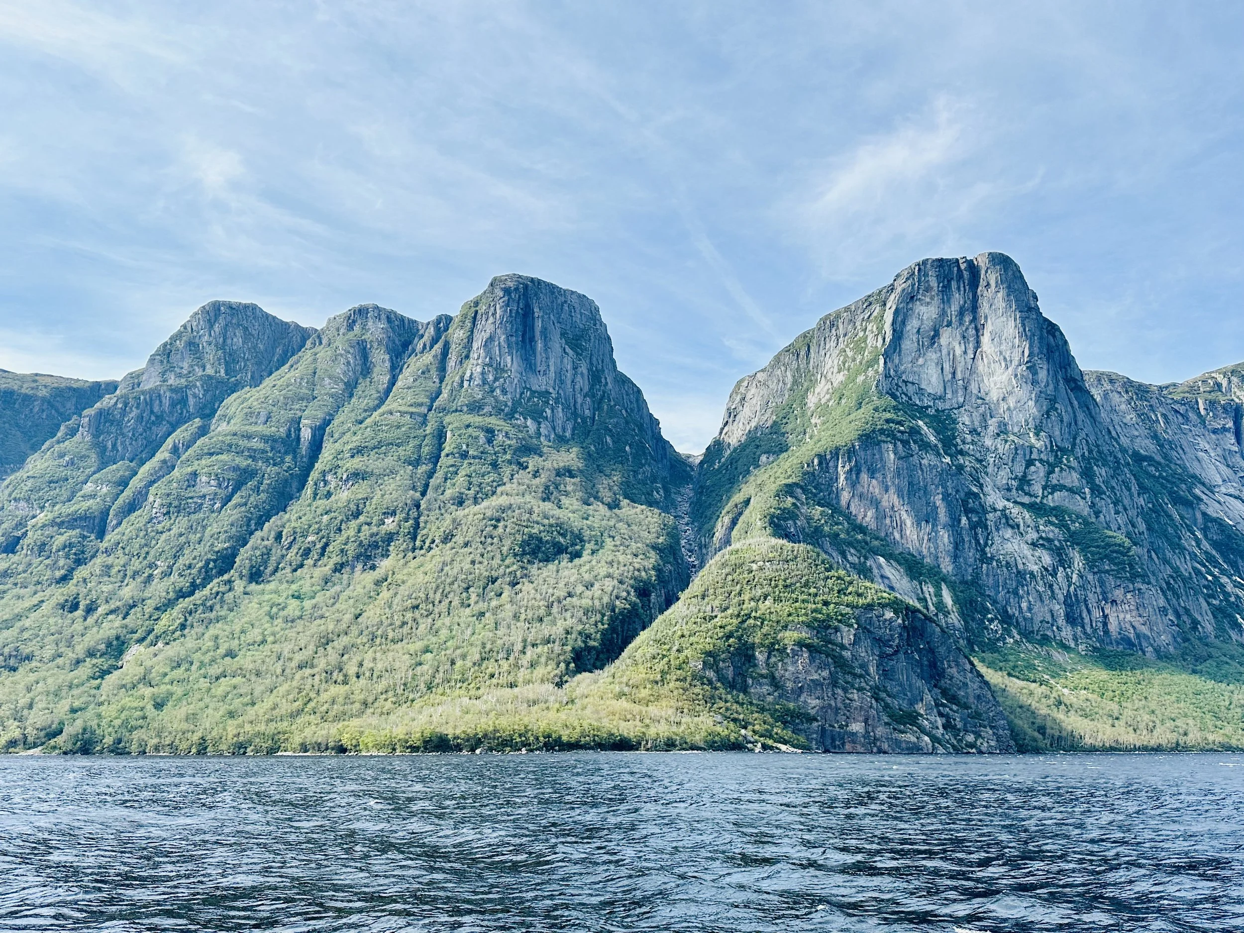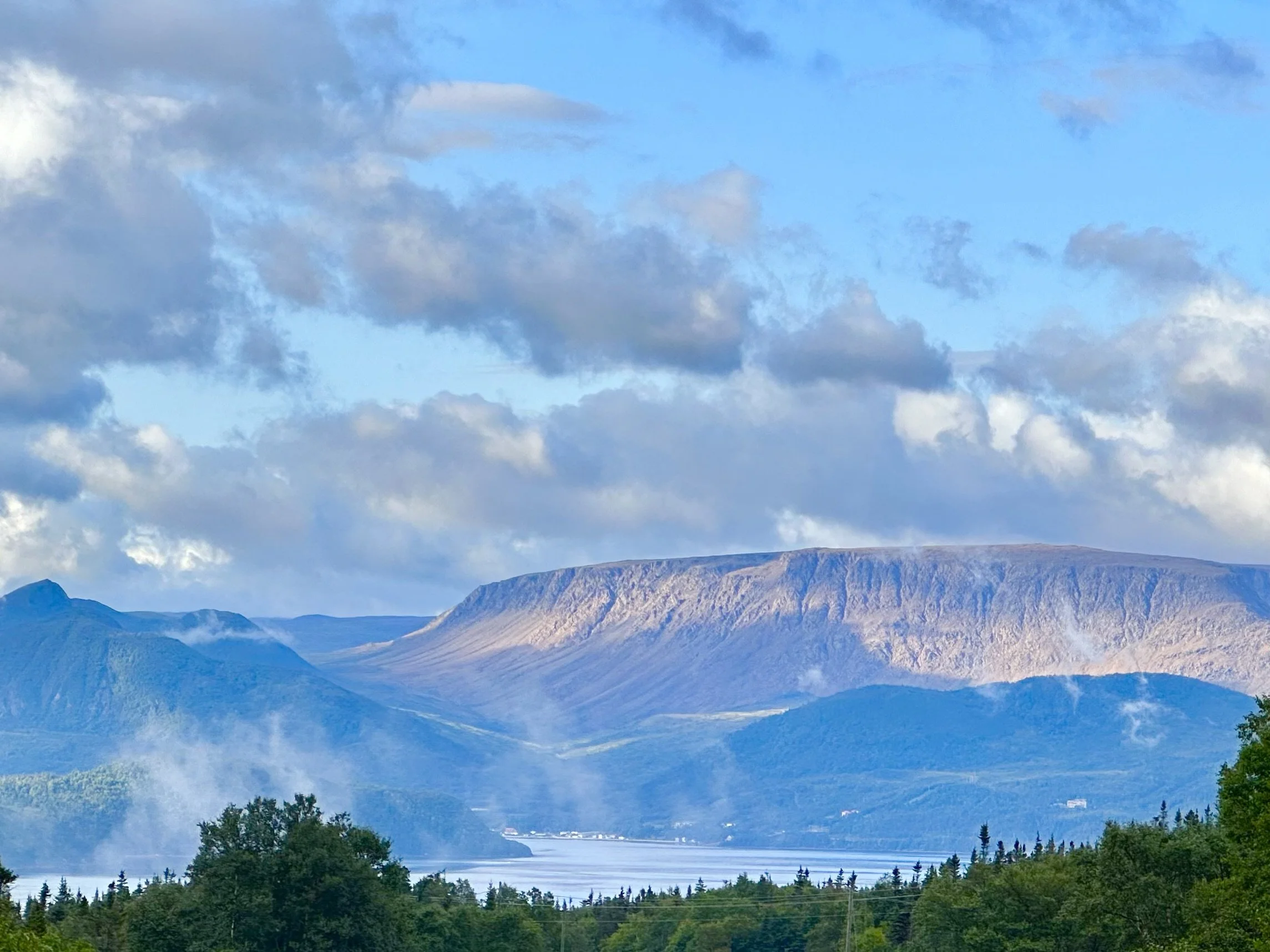 A shot of the Tablelands (the flat peak on the right) and Bonne Bay in Gros Morne Provincial Park. The scenery on the western peninsula of Newfoundland is unparalleled, and the island (together with Labrador) is the least densely populated of all the Canadian provinces, at 1.4 people per square kilometer. It is also home to some of the friendliest and most cheerful people we have ever encountered.