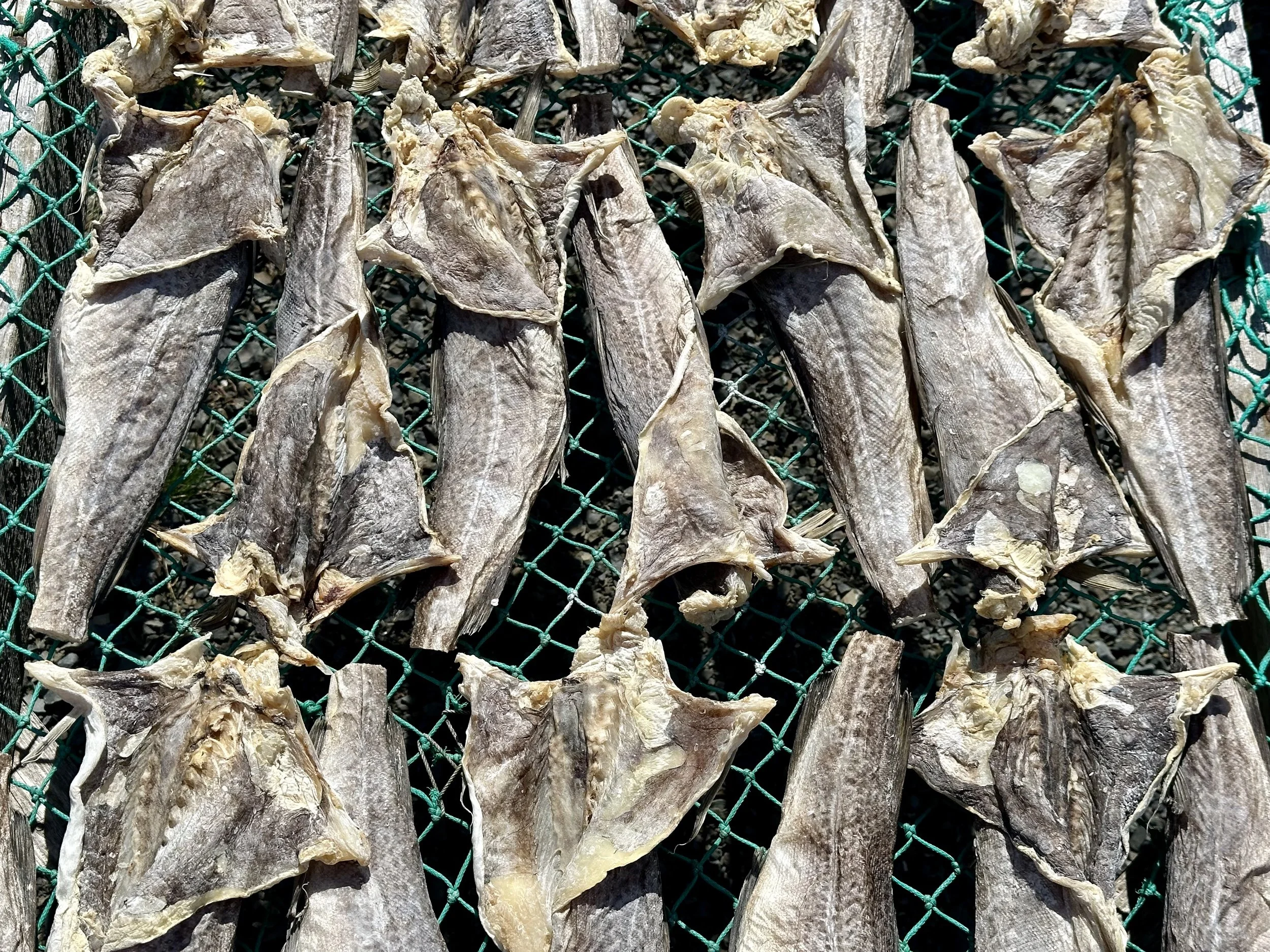 Salted cod drying in the sun at Pearce Cull’s place in St Anthony’s Bight. Pearce kindly explained to us how he cures salt cod the way Newfoundlanders have for centuries.