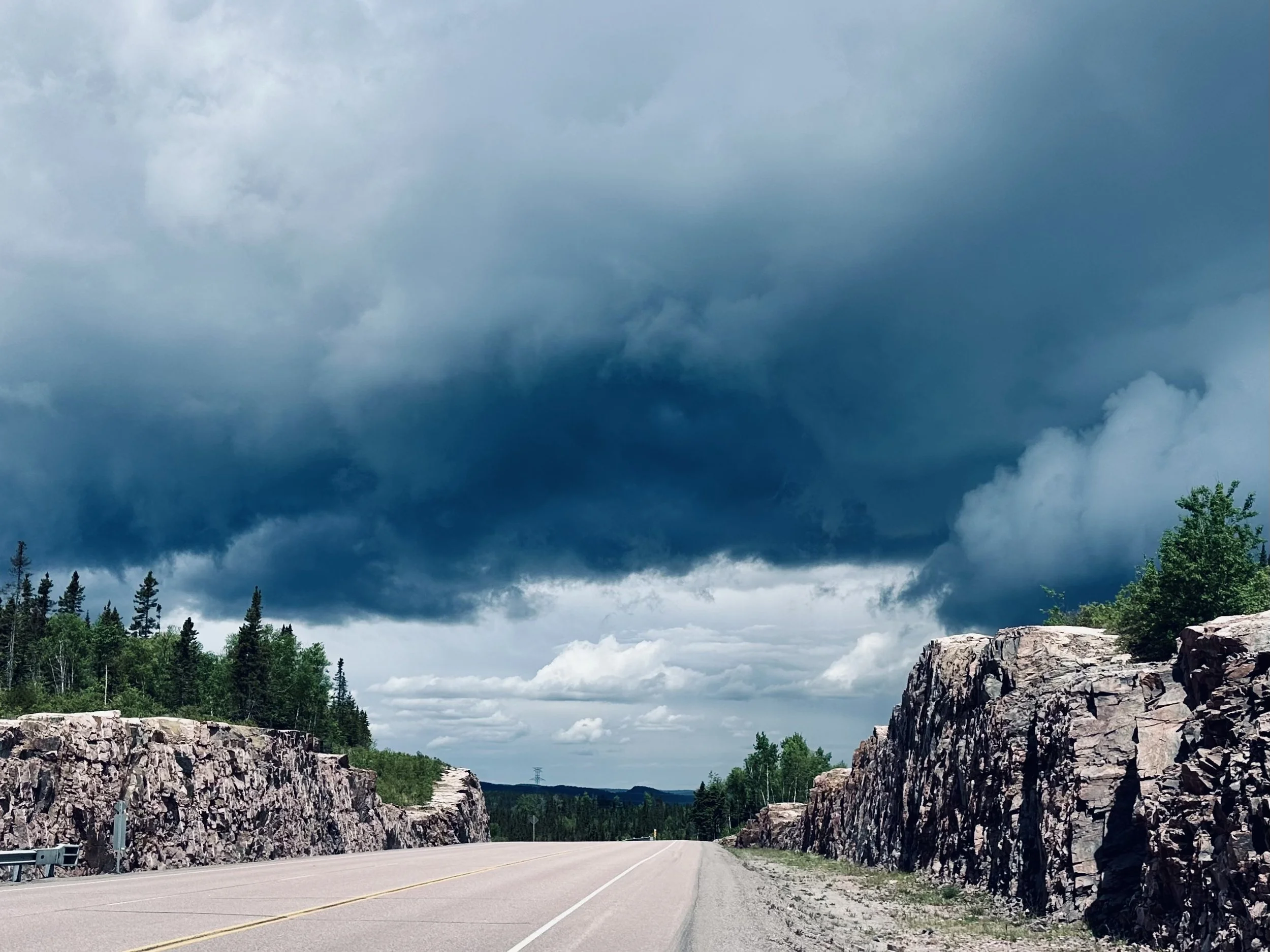 Storm clouds brewing on a summit on the iconic Trans-Canada Highway 17 approaching Schreiber, Ontario.