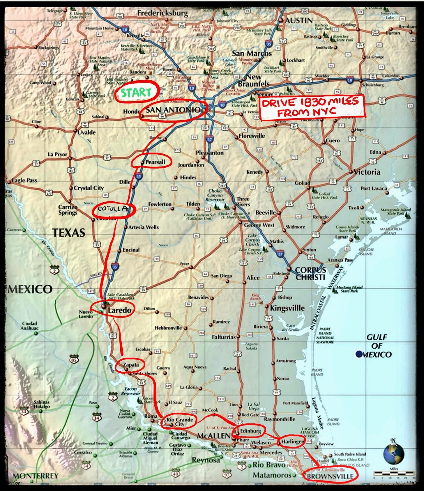 Above is the route taken on our latest bicycle exploration. We are at the midpoint of our trip, and plan to spend the next few days exploring the Brownsville region before returning to San Antonio. We have ridden about 400 miles so far.