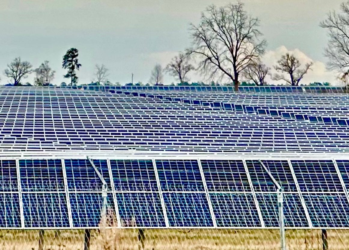 Solar panels are displayed in an aerial photograph of the 700,000-panel solar energy installation near Bainbridge, Georgia, where we met Louis from Jenny's first drawing. NextEra leased the 1,400 linear miles needed (measured by putting the panels side by side). According to WTXL TV in Tallahassee, this project “creates opportunities for the landowners and the farmers to increase their operations while they’re able to rely on the revenue from a plant like this,” said NextEra Energy Resources VP of Development Stuart McCurdy. And farmers and landowners aren’t the only ones benefiting. This project created 350 jobs during the construction period, and over the next 30 years, it’s expected to generate nearly 14 million dollars in tax revenue for Decatur County. Image above from onXBackcountry.