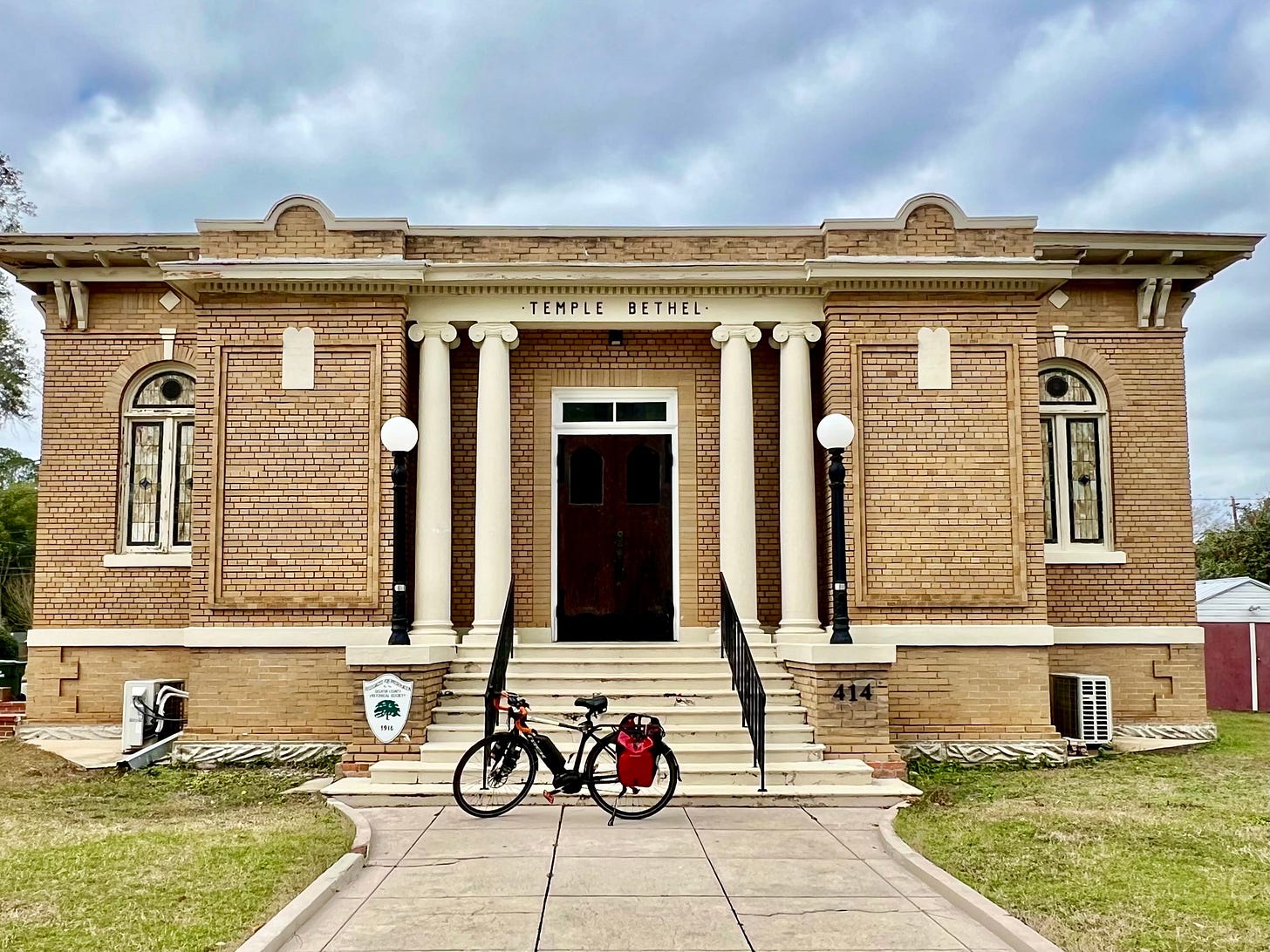As a result, Jenny and I have grown more vigilant about checking weather patterns and planning for unusual events on our cycling trips. Interestingly, weather challenges only add to the fascination of our trips. Sometimes extreme weather becomes the climate story itself, eclipsing what we learn about liquified natural gas export terminals, sacrifice zones, local pollution issues, and poor development. And, just as often, the weather is tolerable; we woke up to about 25 degrees and 10-15 mph winds out of the south. That's not bad, given that our NOAA weather service app predicted 13 degrees for the next night in Meridian. We headed south toward Laurel, taking it one day at a time. We had hoped to go to Hattiesburg next, where we had spent a lovely afternoon a year ago on a different trip, but instead decided to go directly south in search of warmer temperatures. So we headed toward Ocean Springs, Mississippi, on the Gulf Coast. We survived the worst part of the arctic blast, although we were forced to stay inside our motel for an extra day. We did venture out on foot to visit the Walter Anderson Museum of Art (definitely worth a visit!) and eat sensational crab cakes at a nearly empty local restaurant. It remained in the 20s and 30s with intense winds out of the east for the rest of the week, and we soldiered into the wind, staying as close to the coast as possible.