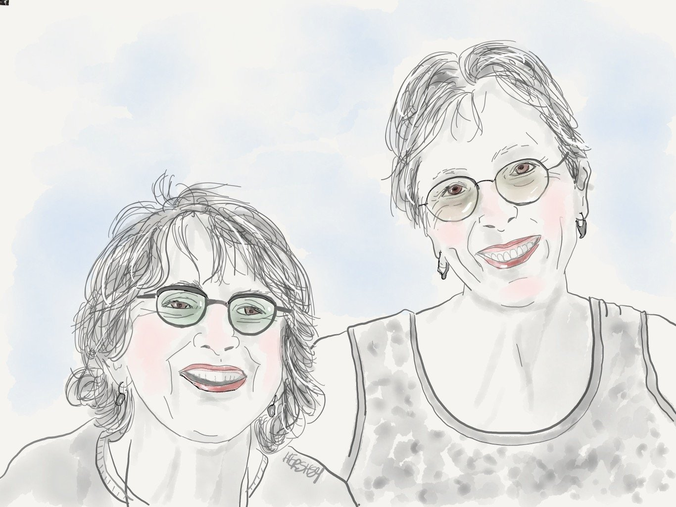 Jenny (left) and Chandler Swain. We met Chandler at our dinner with Jeff and Gillian Mills. Chandler is a master potter, artist, environmental activist, and communications director for the Climate Network in Lanark County, Ontario. Although Jenny rarely draws herself, she feels a strong bond with Chandler, whose enthusiasm, tenacity, and buoyant energy are infectious. Chandler’s passion for environmental work has led her to write about network initiatives for the local online paper, The Humm. Her personal website can be found here. Drawing by Jenny Hershey. Follow her work on Instagram at deeofo.