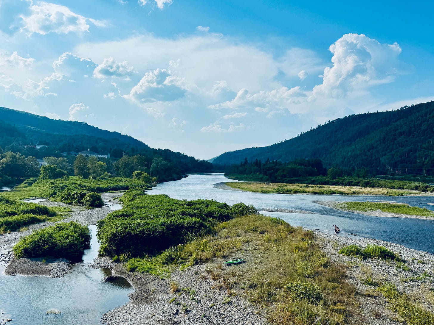 The physical toll was immediate, however, and a harsh lesson in the dangers of heat stroke. Jenny felt it acutely, losing her appetite and becoming lightheaded as the hours wore on. My struggle came the first night, with severe leg cramps that stole my sleep. We found a brief respite on our second day by bathing in our clothes in the cool, clear waters of the Matapédia River. But as the oppressive heat and a pervasive smoky haze - the result, we later learned, of wildfires burning across the province - settled over us, our exhaustion settled into a moodiness that vacillated between quiet introspection and outright crankiness.