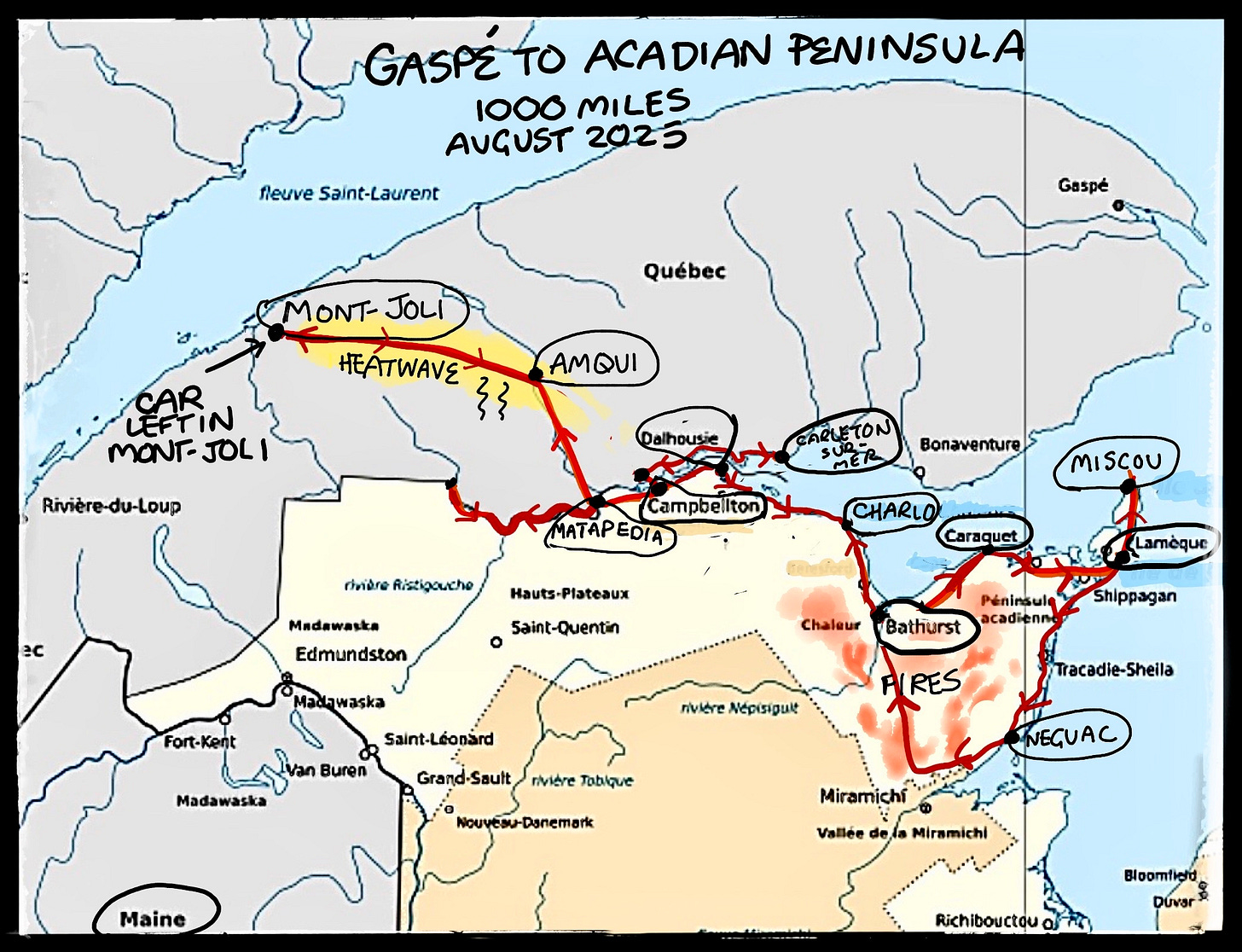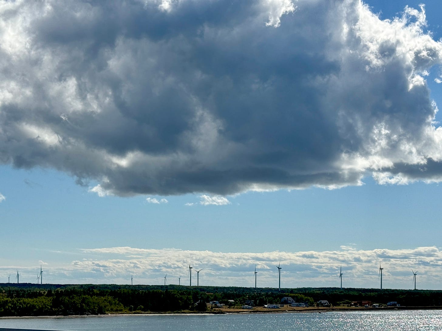 But our enthusiasm was short-lived. The record-breaking 37.6°C (99.7°F) heat was more than mere discomfort; it felt like a planet in distress. As we biked toward New Brunswick’s northern shore, we endured several more brutal days. Thankfully, a day of rain broke the heatwave, followed by a long stretch of beautiful and pleasant days with steady, welcome breezes.