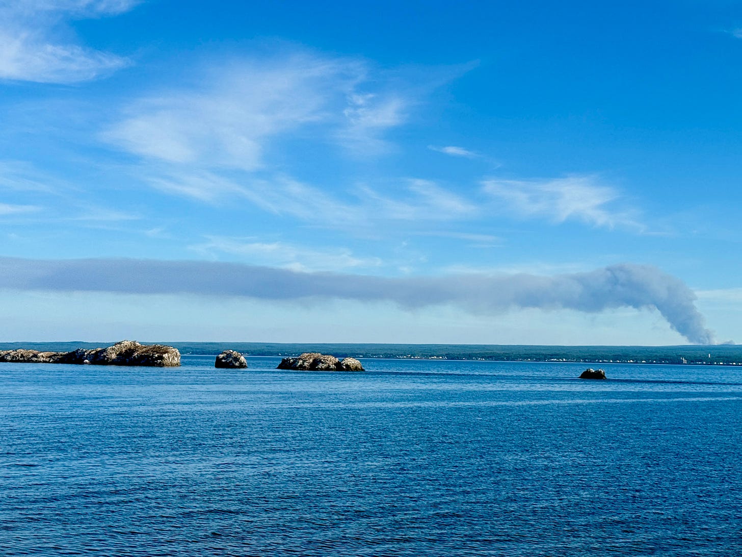 A plume of smoke from a fire between Bathurst and Miramichi drifts over Dalhousie Bay in this photo from August 16. The province is fighting its most severe wildfire season in decades amid Canada’s second-worst fire season on record. The situation remains volatile: on August 19, there were 33 active fires (four out of control). By August 20, that number fell to 20 active fires (five out of control). Today, on August 23, there are 19 active fires with four still burning out of control.