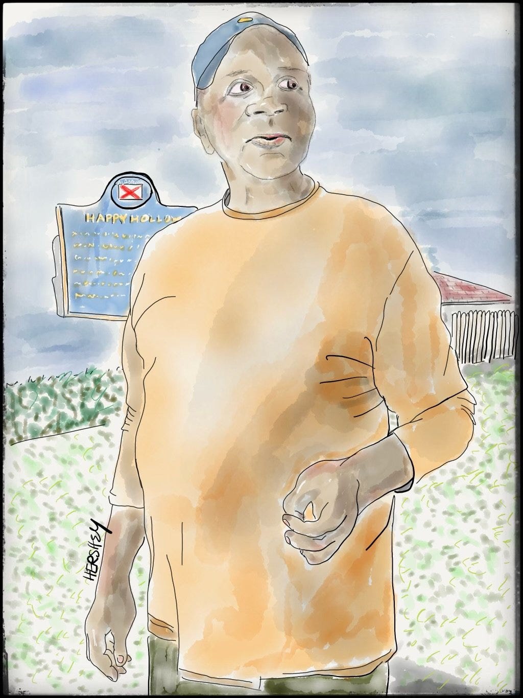 We met a very proud Van Averhart standing next to a historical marker in front of his home in Happy Hollow, the oldest African American neighborhood in Prattville, Alabama. When we asked him where he grew up, Van gestured toward a field, “That’s where my family home was. Most every home was knocked down or rebuilt. The oldest thing in this here neighborhood is that pear tree.” Van seemed to know every person who drove by. He said, “I’m an Averhart! It’s a big name in these parts!” Van was the town’s first African American firefighter and paramedic. He did three tours of duty in a 28-year military career. Raised with seven brothers and a sister, he was taught to have a strong work ethic. Van is a die-hard Democrat and very attentive to politics. Jenny asked, “What do I need to know as a liberal Jew from NYC about the people of Prattville? “ “We’re friendly, we care, we like diversity,” Van replied. And then he shared his disappointment that “Many black folks in town don’t want conflict with white people, so they either don’t vote or they vote with them.”