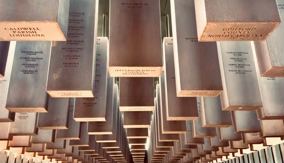 Commemorative hanging tombstones honoring each of the 4,400 known victims of lynchings across the United States at the National Memorial for Peace and Justice. It's impossible to describe how moving and unsettling this memorial is.