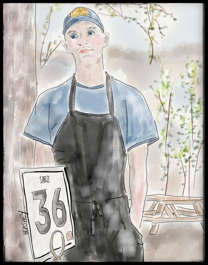 Atticus is a kind, gentle 17-year-old boy who waited on us at the White Oak Pasture Farm in Bluffton, Georgia, a family-run farm focusing on regenerative land management. Atticus (his mother named him after Atticus Finch) is a high school senior. He’s very reticent about leaving home to go to Georgia Southwestern State College in Americus. His brother left for an elite college in New England two years ago, but Atticus has no desire to follow in his footsteps. Atticus timidly confessed, “I don’t wanna grow up.” Jenny asked, “Like Peter Pan?”. He didn’t miss a beat. “Yeh, and pay taxes, have to do grown-up things and all kinds of other stuff,” Atticus muttered. “I don’t wanna leave this town. I’m gonna come back here.” Later, we learned that he had a rough time during the Covid pandemic. Atticus is not into social media, and his life in Bluffton (pop 113) is isolated. He did cultivate a friendship with a kid from Great Britain through a video game. When Jenny asked Atticus if he will vote in November (he turns 18 in May), he said he wasn’t interested. “No? Really? Do you have any curiosity?” Jenny asked. Atticus responded, “Nope. I just don’t care.”