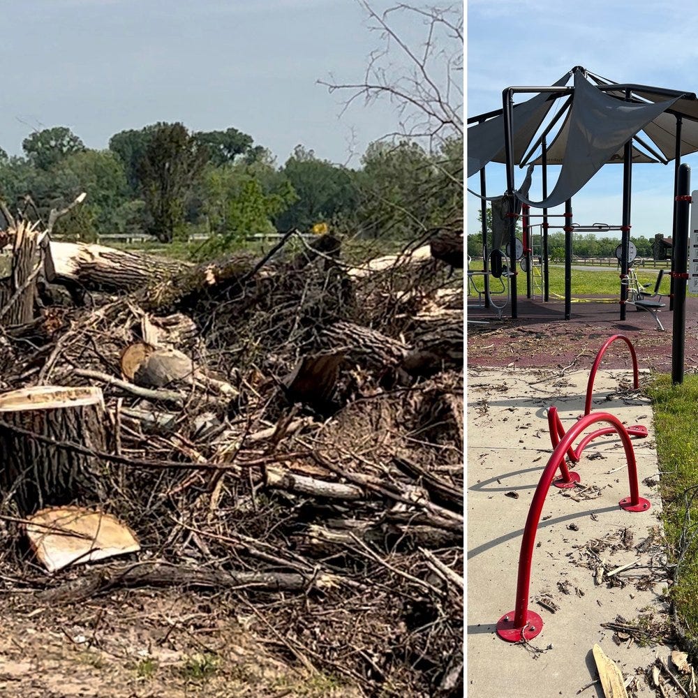 Confidant that climate-related stories are now to be found anywhere and everywhere, we already knew about the deadly tornadoes of March 31, 2023, that had moved through a large portion of the south and midwest, including a particularly devastating tornado that hit North Little Rock, only one week after the Amory, Rolling Fork and Silver City tornadoes in Mississippi. Although we didn’t see the neighborhoods in North and West Little Rock devastated (nor the shopping center that took out a Trek Bike Shop, among other businesses), we did see large swaths of park damage on both sides of the Arkansas River. The North Little Rock tornado had winds up to 165 mph and a path length spanning 20-25 miles, which is unusually large. We thought we would likely see more tornado destruction (see Part 1 in this series). However, on our way to Lake Maumelle from Little Rock, we discovered a different water-related climate story that captured our interest.